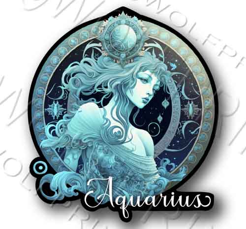 Aquarius Zodiac Sign Vinyl Sticker 4.7" Tall Decal