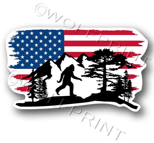 Bigfoot Sasquatch Mountain Flag Decal Sticker 5" Wide