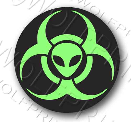 Biohazard Alien 4" Round Sticker - Funny Space UFO Window Vinyl ET Space