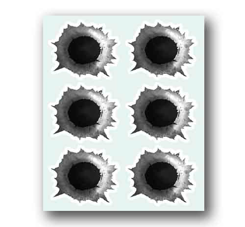 Bullet Holes 6 individual stickers 1.75" Wide Waterproof Vinyl Funny Decal