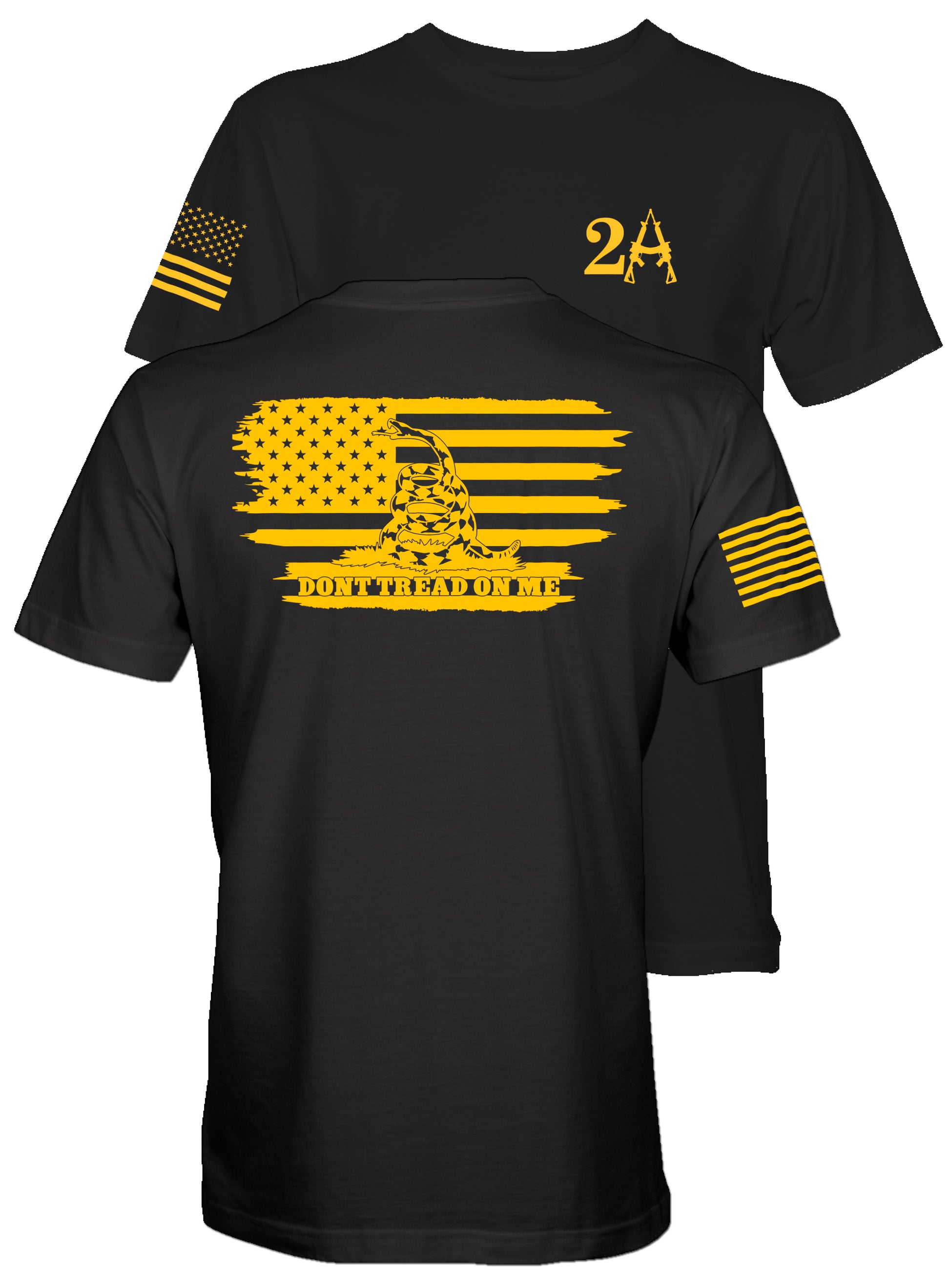 Men's Dont Tread on Me Tattered American Flag Black T-shirt