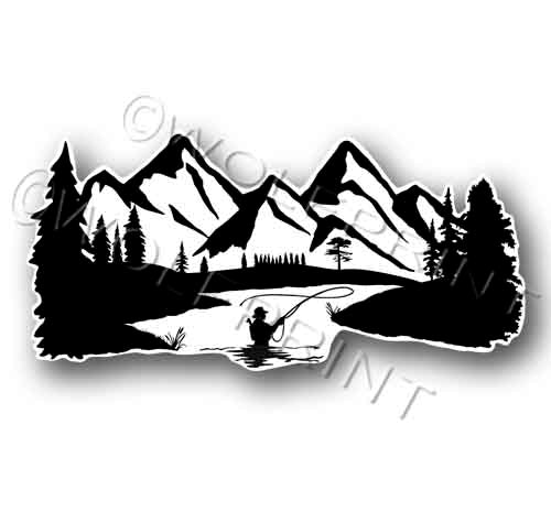 Fly Fisherman Mountain Fly Fishing 5" Wide Sticker Waterproof Vinyl Decal