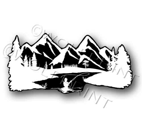Fly Fisherman Mountain Fly Fishing 5" Wide Sticker Waterproof Vinyl Decal White