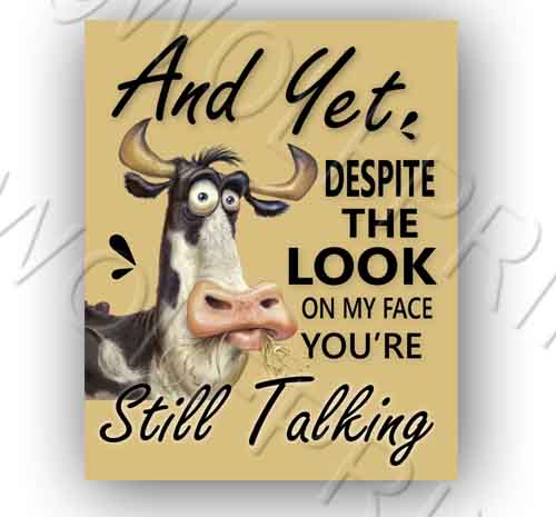 Funny Cow Still Talking Ta 4.75" Tall Sticker Despite the Look on my Face Decal