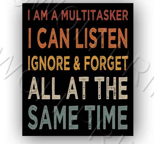 Funny Multitasker 4.75" Tall Sticker Listen Ignore Forget at the same time Decal