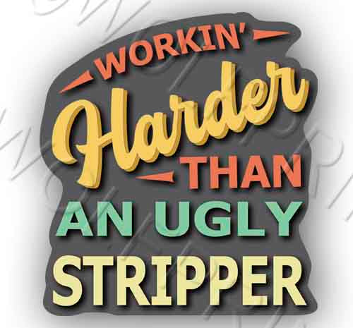 Funny Stripper 4.75" Tall Sticker Workin Harder than an Ugly Stripper Decal