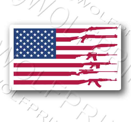 Gun Flag Sticker 5" Wide - Pro 2nd Amendment Firearm Rifle USA Flag