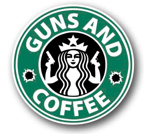 Guns and Coffee 4" Round Sticker - Funny Waterproof Vinyl Decal Sticker