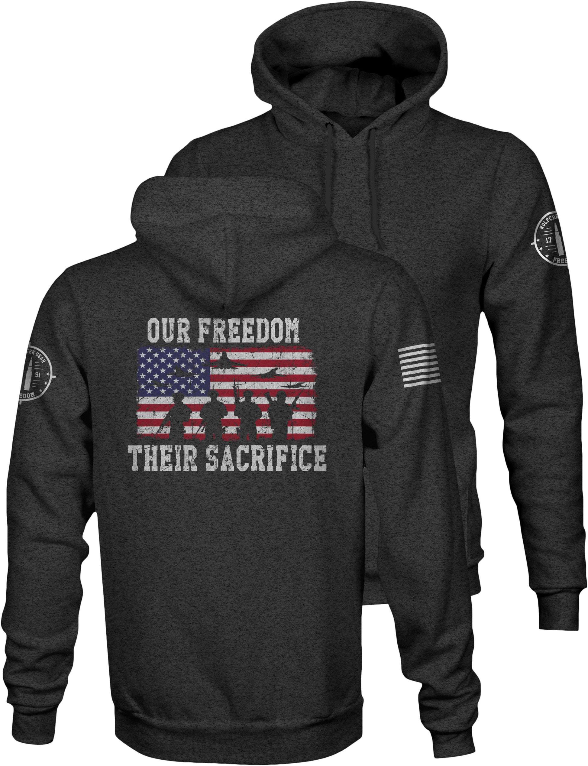 Men's Patriotic-Our Freedom Their Sacrifice Hoodie - Dark Charcoal Gray