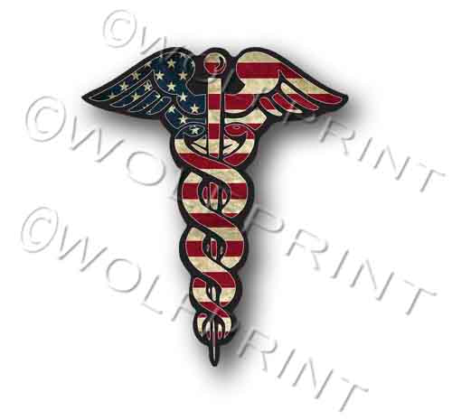 Nurse Caduceus RN Doctor Medical EMT Patriotic Decal Sticker 4.75" Tall