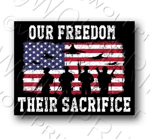 Our Freedom Their Sacrifice Patriotic Veteran Military Sticker 4.75" Wide