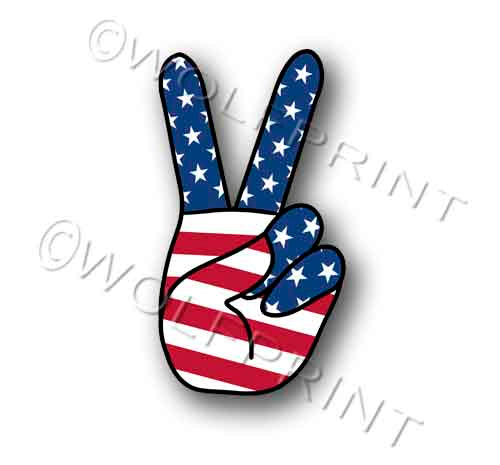 Peace Hand Flag 5" Tall | Patriotic Vinyl Sticker | Window Decal