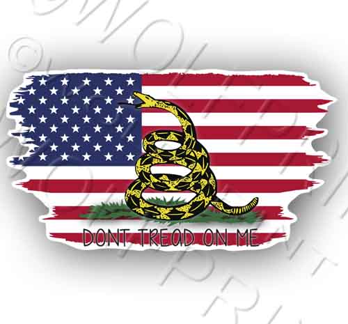 Tattered Gadsden Flag 4.9" Wide Sticker Decal Dont Tread on Me Snake