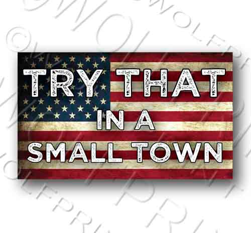 Try That In A Small Town Patriotic Grunge Flag Sticker 5.2" Wide Decal